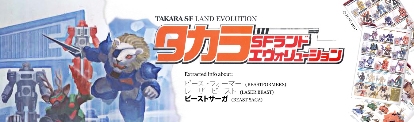 On Page 76 (part of the page shown on image left) within the Takara SF Land Evolution (2017) book the first ビーストサーガ (Beast Saga) can be found, in total the book holds 8 pages (P76-P83) with info about this more recent (2012) line by Takara Tomy.