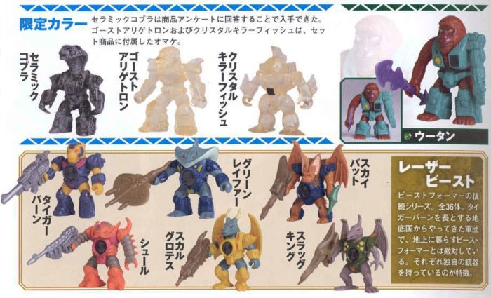 The so called ¨Premium¨ or in this case 限定カラー (Limited Color) Battle Beasts (Stone Cobra, Clear Gator and Clear Carp) are also briefly discussed here is the translation of that part (image right, text above Premium figures, part of P31)