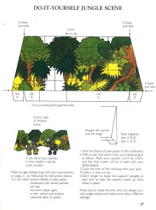 In the UK they were lucky enough at a certain point to start building their own Battle Beasts Scenes that were in line with the stories which were found in the Battle Beasts Annual (1988). In total there were 3 pages within that Annual showing ideas and suggestions for creating your own Battle Beasts Scene. Not sure if a lot of those were actually created because they were more guidelines rather than an actual page you could cut into in order to create the Battle Scene that was suggested but the idea was clear.