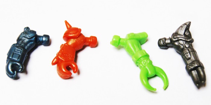 Loose Greek Battle Beasts (GBB) arms clearly showing the pegs.