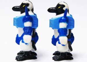 Even though it is in most cases pretty obvious when you have a figure with the wrong arm(s) of another figure or a figure with its arm backwards it is not always that obvious. Big chance that when you have a decent size Battle Beasts collection there´s one or more Beasts that qualify for an ¨Arm Swap¨ without you even knowing about it. This is due to the fact that some Beasts have a less obvious left and right arm design, or in other words it is hard to tell apart which one is actually the left or right arm. This might sound strange but as founders of the Pugnacious Penguin Army (PPA) we realized that the Penguin is one of the figures which as a less obvious distinction between both arms. So whereas the figures with obvious arm differences, like the ones on the image above (except the Octopus), which have one Battle Arm (weapon, drill or whatever (ALWAYS the Left arm of the figure)) it is less obvious on a couple others. Just to name a few apart from the Penguin; Frenzied Flamingo, Blue Eagle, Tiger Burn, Rainbow Samu, Flying Kickback, etc.