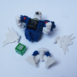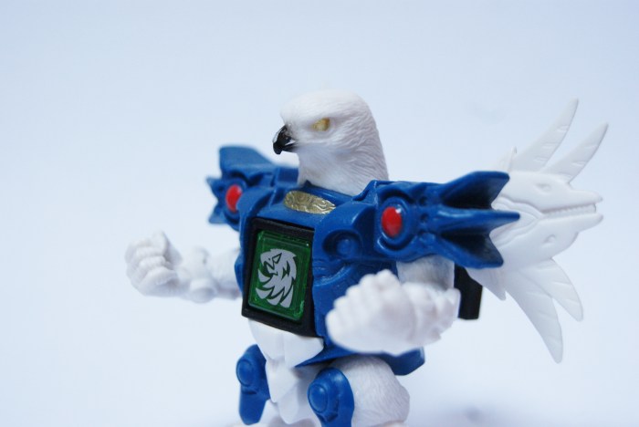 With this in mind, and the fact that you could also pull ¨only¨ a dice set, the difference in price is more understandable. The missing articulation clearly is a setback for many collectors and also in Japan there were some comments about this but apart from all these details they´re clear Beast Saga figures and well designed. Whereas the Lion, Shark and Panda are almost exact copies of the original releases, just slightly smaller, there was one new and unknown figure that could be obtained from these eggs as well the White Hawk!