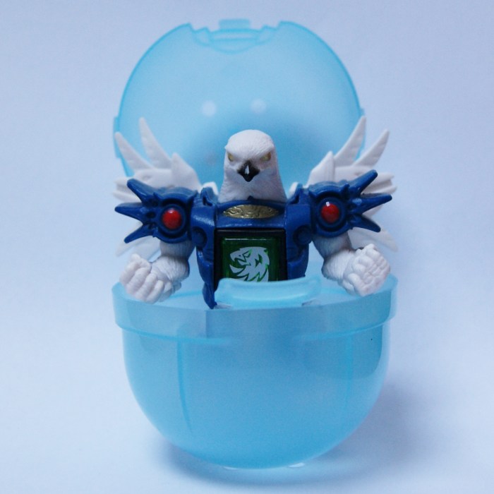 After inserting the ¥200 into the Gacha machine a couple of hand-cranks (gacha-gacha) and the drop of the egg (pon) the tension rises because what would be inside the egg?! With the Gachapon being a ¨blind-purchase¨ by nature it´s a matter of pure luck to find the figure you are after inside the egg. But if you were lucky you could pull that one rare Gachapon item in this case even a Gachapon Exclusive, the White Hawk.