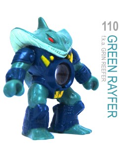Let´s take a better look at the Mancer part because we also had ideas the second part (m)ancer was forthcoming from a play with ランサー (Lancer). But this wouldn´t rule out the present マ (Ma), the extra M, in the name. Meaning that it most likely has been Mancer all along. Initially the relation between the figure and Mancer is not directly clear but looking at its weapon description, called the Big Fin Laser;