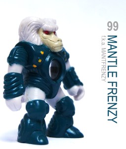 Once the Japanese name is translated today the outcome of マントフレンジー = Cloak Frenzy. Looking purely at the マント part which translates into ¨Manto¨ the switch from Cloak to Mantle is made rather easy and in an understandable way. And this Mantle reference has been derived from the actual animal that´s represented in this figure; the Hamadryas baboon of which the adult males have a pronounced cape (Mane and Mantle). And thus the subtle change from the former Mant(frenzy) into Mantle Frenzy.