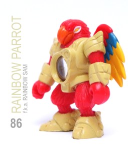 Problem here is that one part of the name is bright as a rainbow from the beginning and it makes sense with the appearance of the figure so the Rainbow part has been solid. But the Sam part… has been a serious struggle because would this Parrot seriously be the only Beast that had an actual name and if so why did none of the other LB have a human like name? And this is were we left of going all over the place in order to explain the final part of the name. And despite some awesome names that came out of it all of them were not pure enough to be in line with the translation. Until this came up オウム (Ōmu) which simply means Parrot in Japanese. So the former ignored mu part from Samu most likely has been the result of a play of words again between Rainbow and Parrot in Japanese. With レインボ being the short form for the Japanese word Rainbow and ム referring to the last part of the Japanese word for Parrot. Leaving ーサ (sa) which translates in ¨user¨ open but since it´s a play of Japanese characters and words partially cut it´s impossible to understand what they initially intentended to do with it. If it´s a play between Rainbow and Parrot there are not a whole lot of options other than Rainbowrot or Rainbowarrot, options that simply didn´t make much sense. With this complexity and looking at the other names among these first 12 Laser Beasts were most seem to have a direct presence of the actual animal name in it; TIGER Burn, Spark SHARK, etc. Rainbow PARROT is the best and most logic outcome especially considering the fact that none of us could agree with the completely out of the blue name Sam.