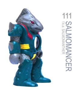 This translates directly into “Sāmomansā” and in English it translates into; Thermomancer. Which is a play of words that is not in line with the figure and it´s background story. For the initial English translation it looks like parts have been moved around resulting in the fact that the Salmo(n) part moved to the beginning of the name while the Ther(mo) moved to the end of it resulting in SALMOMANTHER.