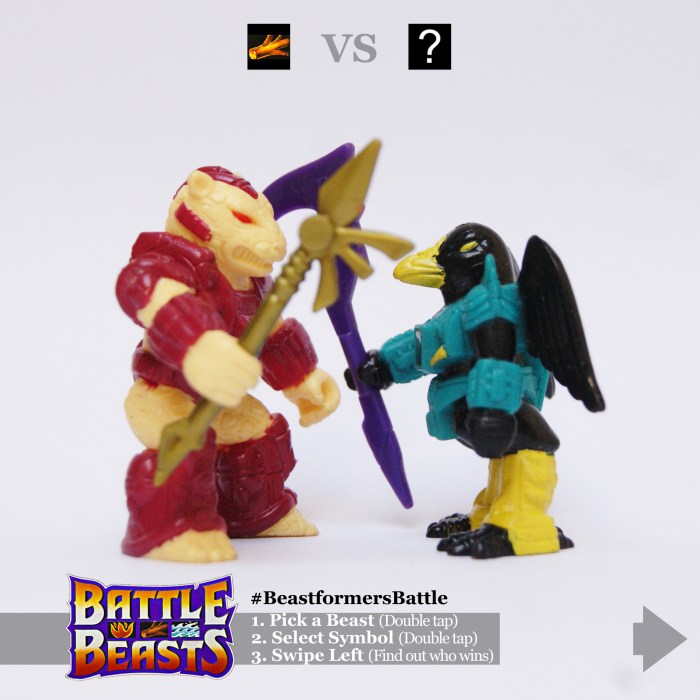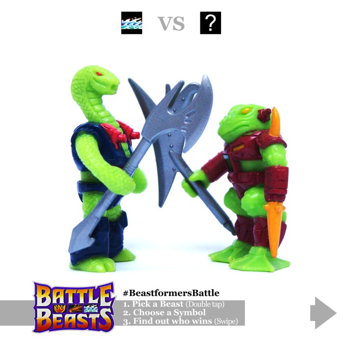 All you had to do was to simply pick one of the two Beasts from the lineup (double tap which would automatically leave a like as well) of that concerning Beastformers Battle and in order to deal with the possibility of a tie (same symbol) also a symbol had to be chosen (Fire, Wood or Water).