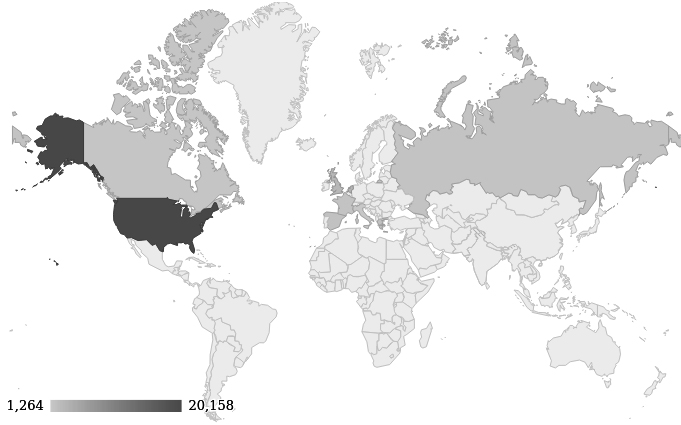 * With more and more people using a VPN it´s likely that the actual number of unique different countries is lower.