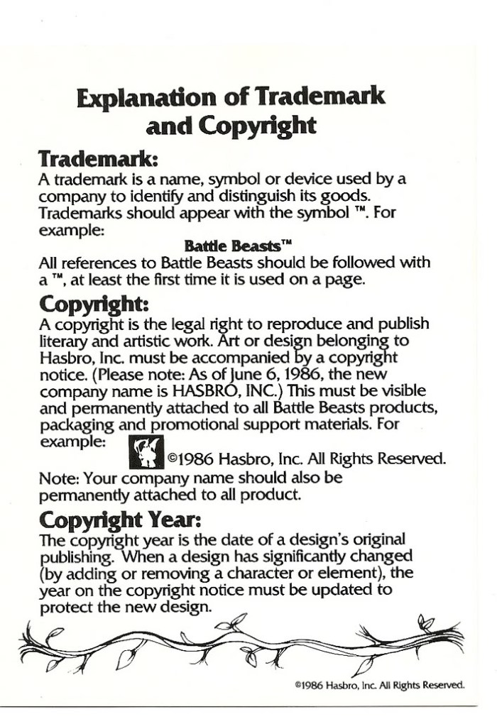 What will the Year of the Fire Horse bring for, or to, the Beastformers Blog? That´s something we´ll get to later on in this post but first let´s take a moment to realise the following. Because when we rewind 40 years back in time we arrive in the year 1986! Yes, it´s that long ago already… But 1986 is a very special year when it comes to our beloved Battle Beasts. 1986 Is the year the Battle Beasts were invented by TAKARA in Japan. All of the documentation in regards to the Beasts shows that prior to this year there´s been no Official sign of the existence of this toy line. It is possible that the first designs/concepts by TAKARA were made in 1985 and it came to live in 1986 but that´s something we don´t know. What we do know is that alongside TAKARA in 1986 HASBRO bought the Rights for the name Battle Beasts and it informed other companies who potentially could receive a Licence to release BB related items on how to formulate this correctly, as shown on this page from the HASBRO Line Art Kit 1986.