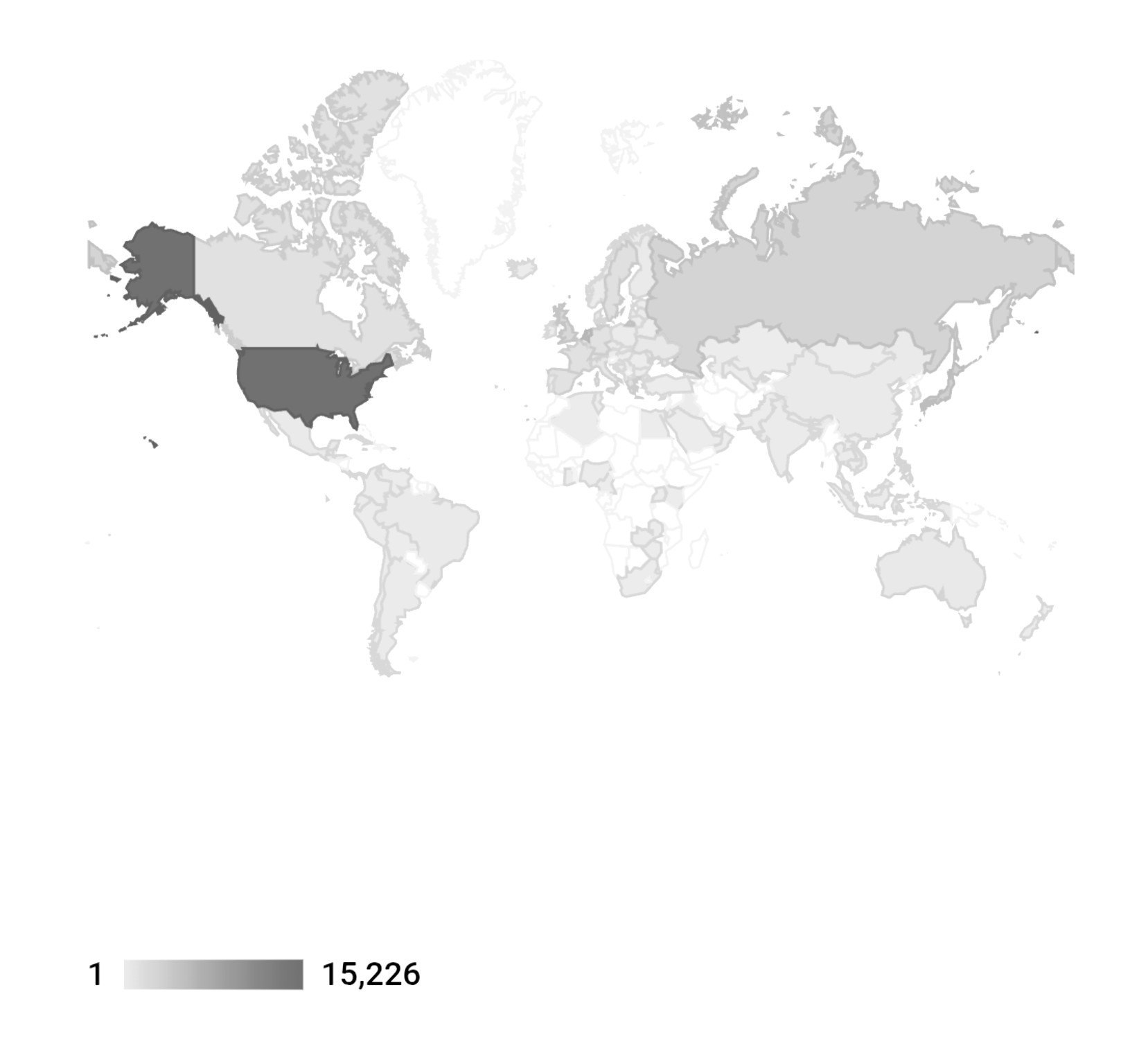 ** With more and more people using a VPN it’s likely that the actual number of unique different countries is lower.