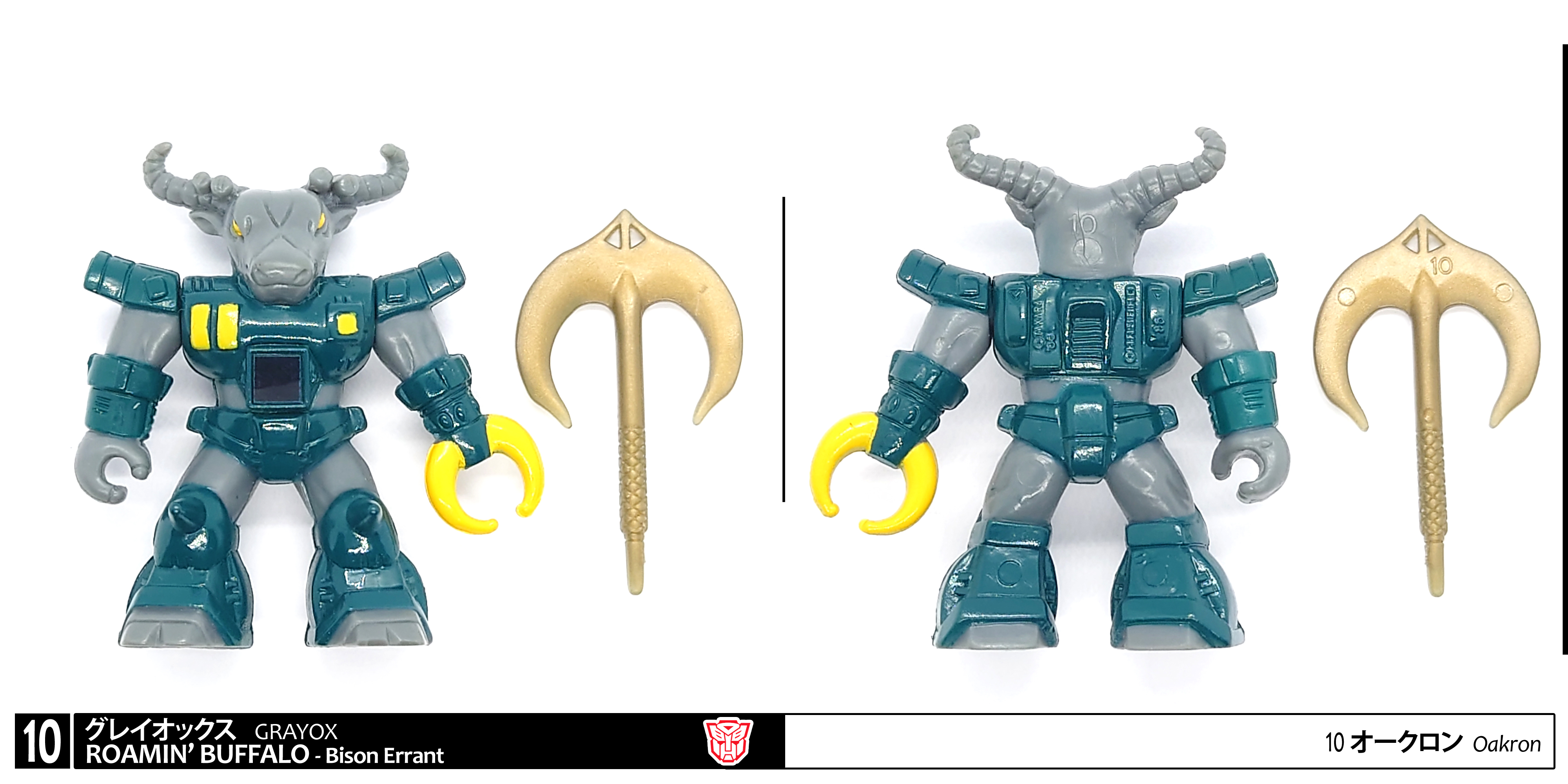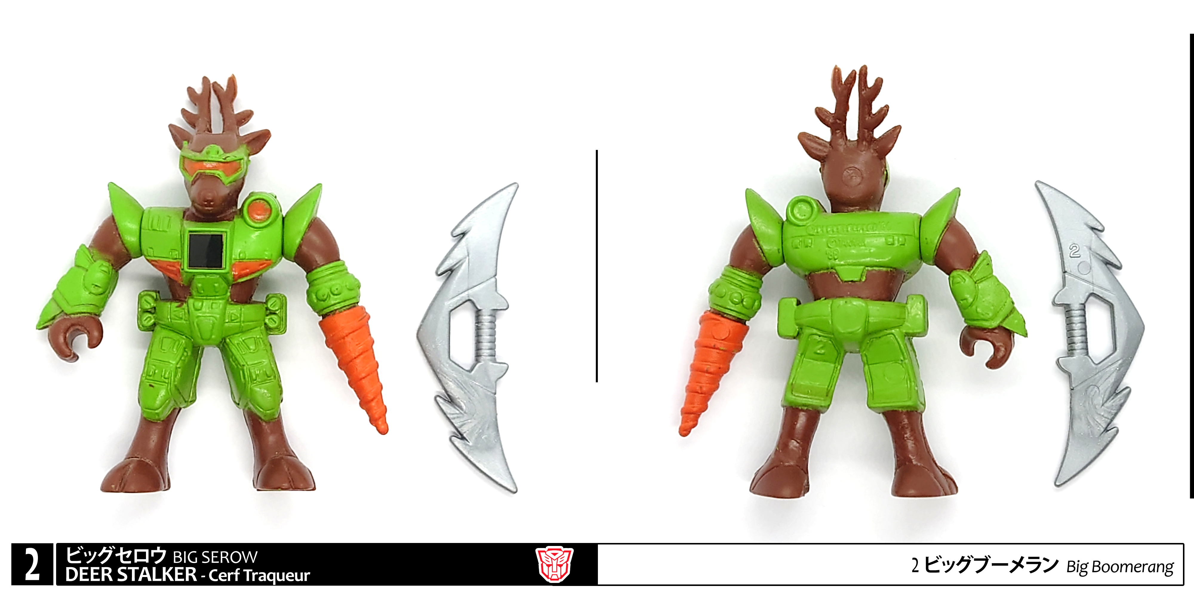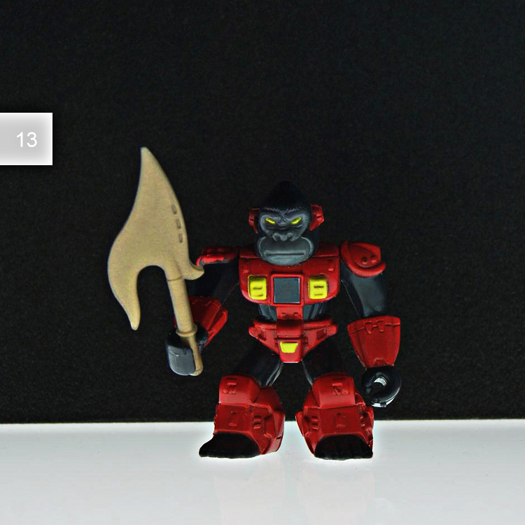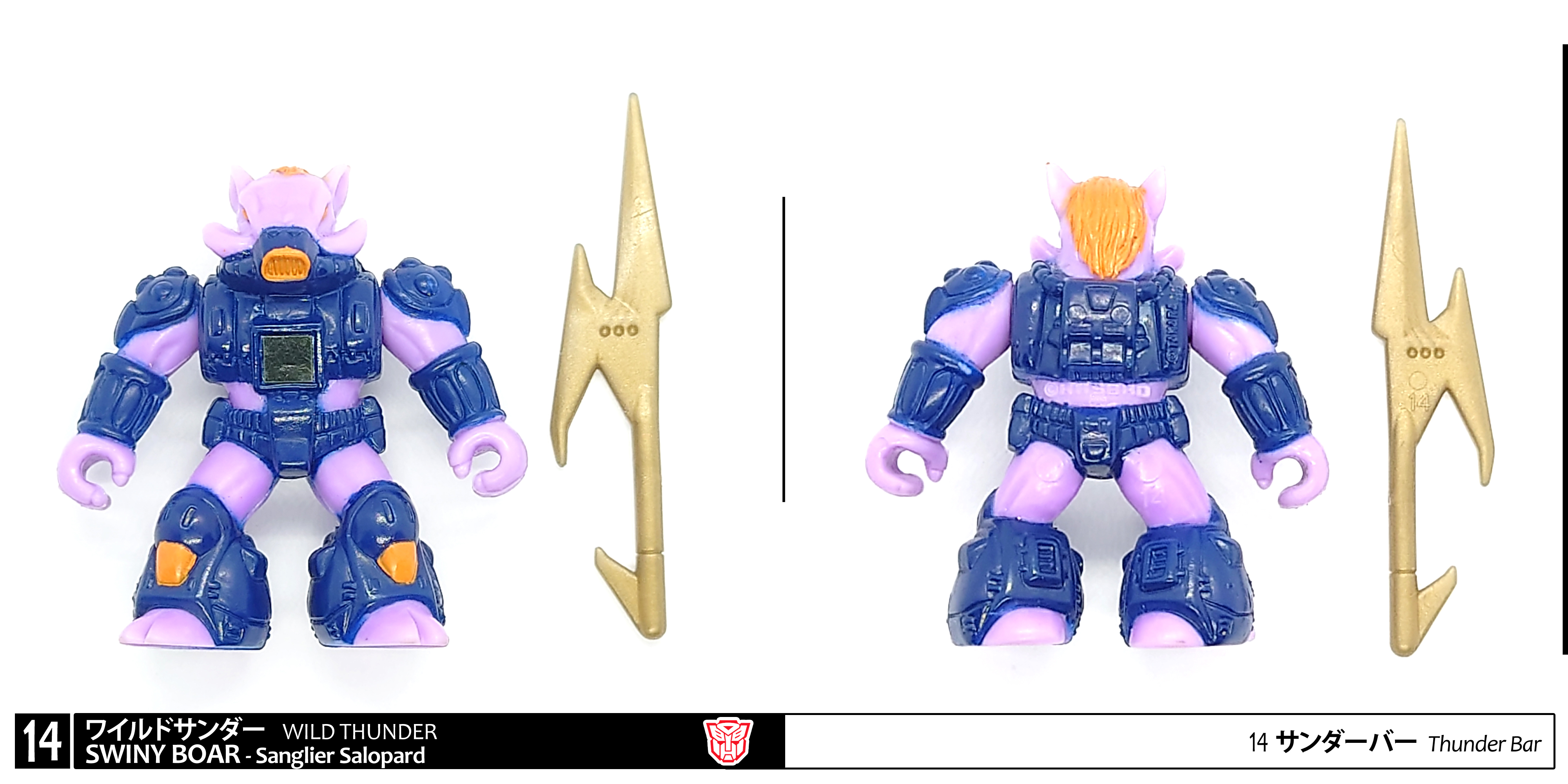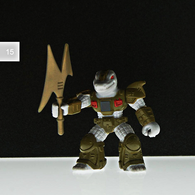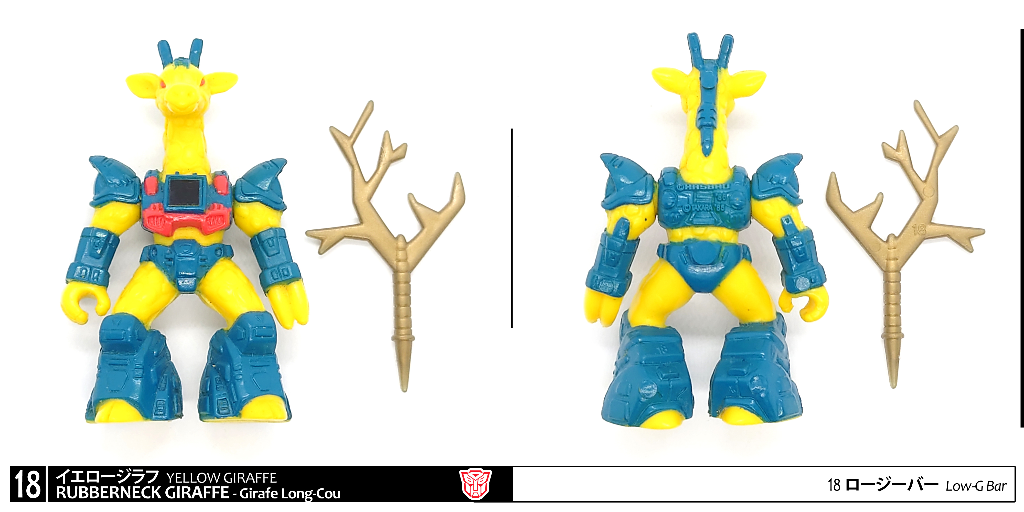 The First series of Battle Beasts was directly the most widespread one since they were available in Japan, Europe and North America during the ’80s. This series contained 28 figures (#1 – #28). On these series 1 figures the © Takara ’86 – © Hasbro ’86 mark can be found on the back of the figure as well as their number, which is also present on their weapon. In some European countries these first 28 figures were even produced in own factories resulting in the Spanish Bestias de Combate and the Greek Bootleg line Tepato Maxoi. In some cases a sticker [中国製] can be found on the bottom of one of the feet. This is referring to the fact of it being a genuine figure from Japan. It literally means; ”Made in China”, which seems a bit ironic but it makes more sense knowing all figures from the Japanese line were produced in China.