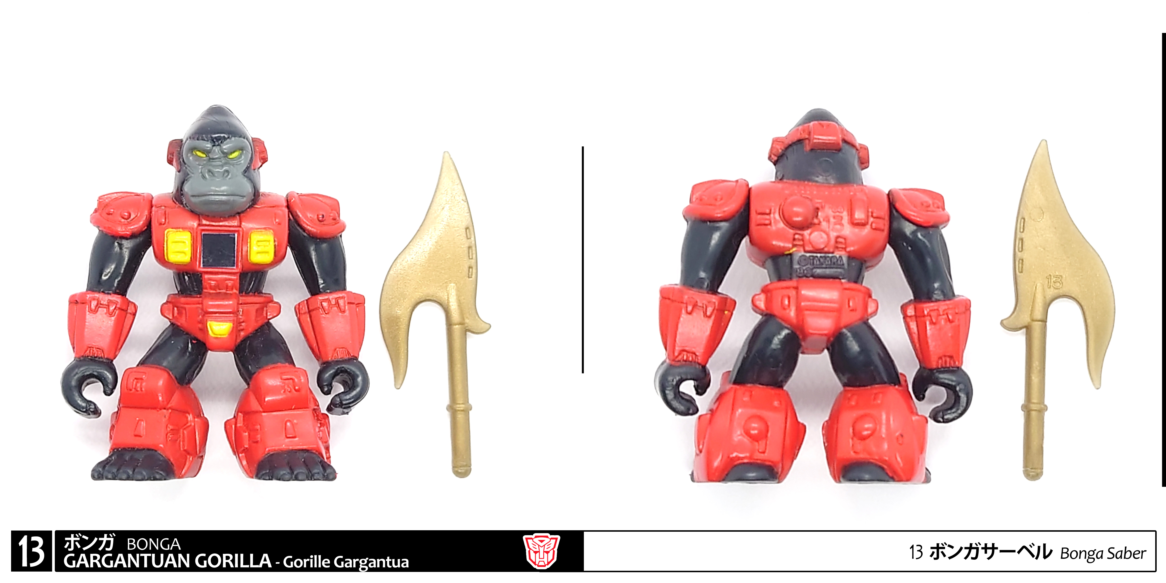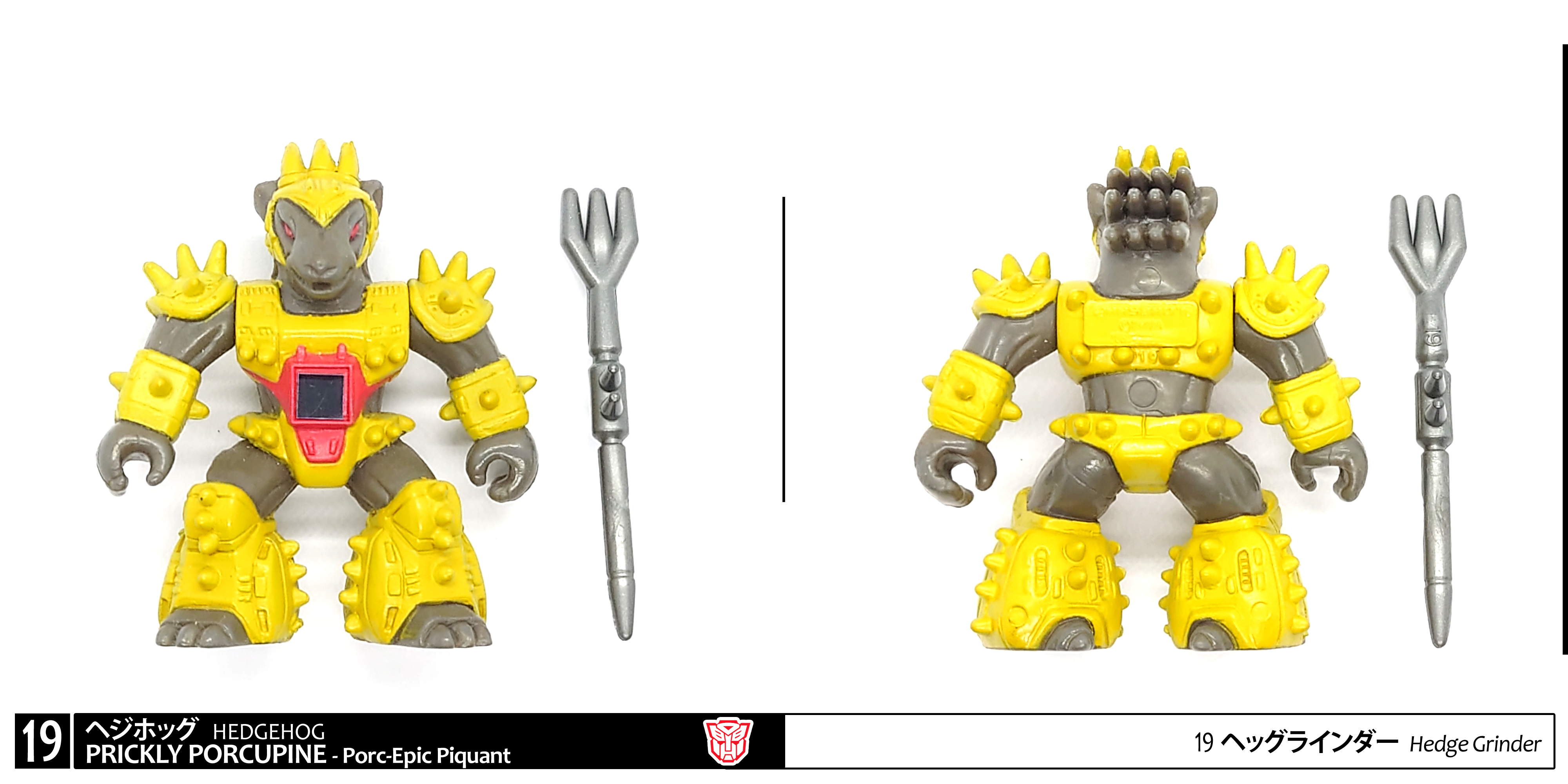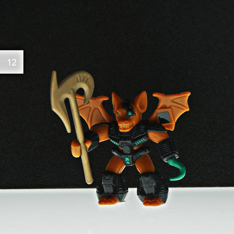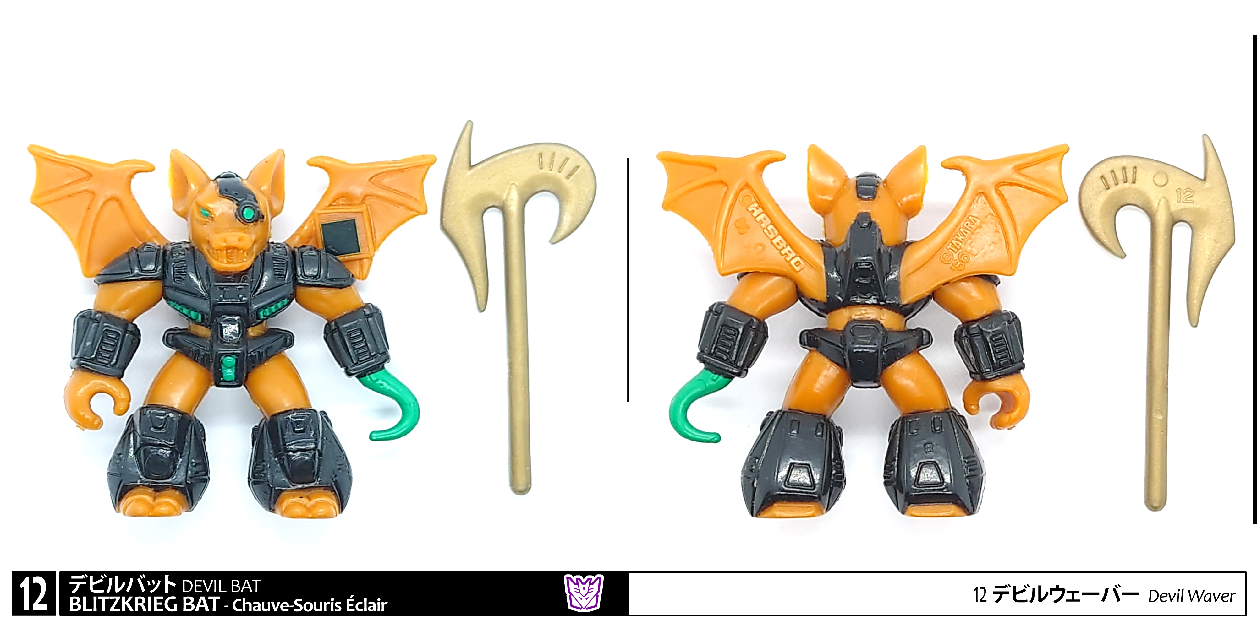 The First series of Battle Beasts was directly the most widespread one since they were available in Japan, Europe and North America during the ’80s. This series contained 28 figures (#1 – #28). On these series 1 figures the © Takara ’86 – © Hasbro ’86 mark can be found on the back of the figure as well as their number, which is also present on their weapon. In some European countries these first 28 figures were even produced in own factories resulting in the Spanish Bestias de Combate and the Greek Bootleg line Tepato Maxoi. In some cases a sticker [中国製] can be found on the bottom of one of the feet. This is referring to the fact of it being a genuine figure from Japan. It literally means; ”Made in China”, which seems a bit ironic but it makes more sense knowing all figures from the Japanese line were produced in China.