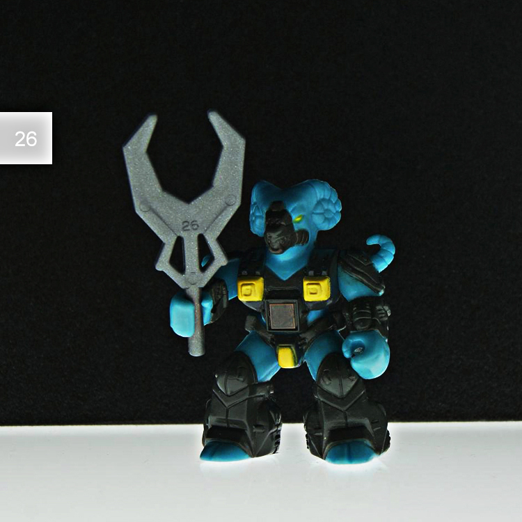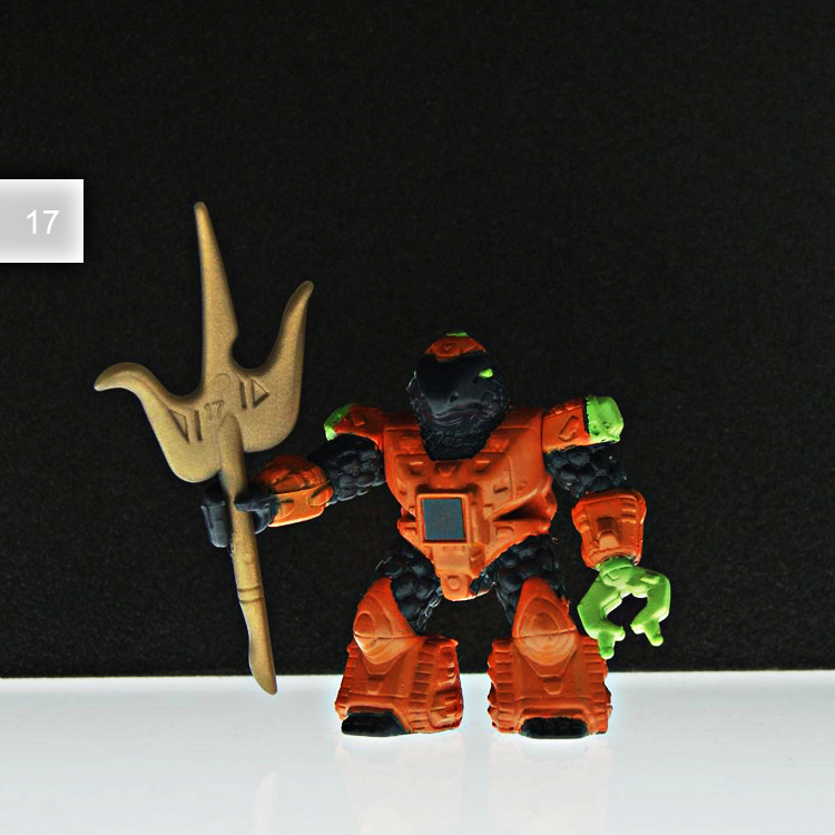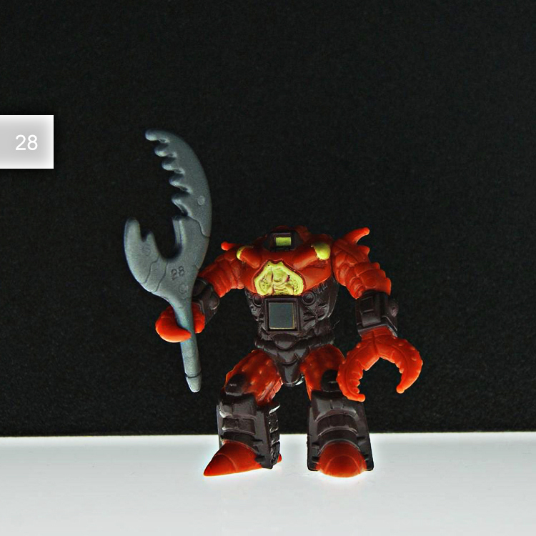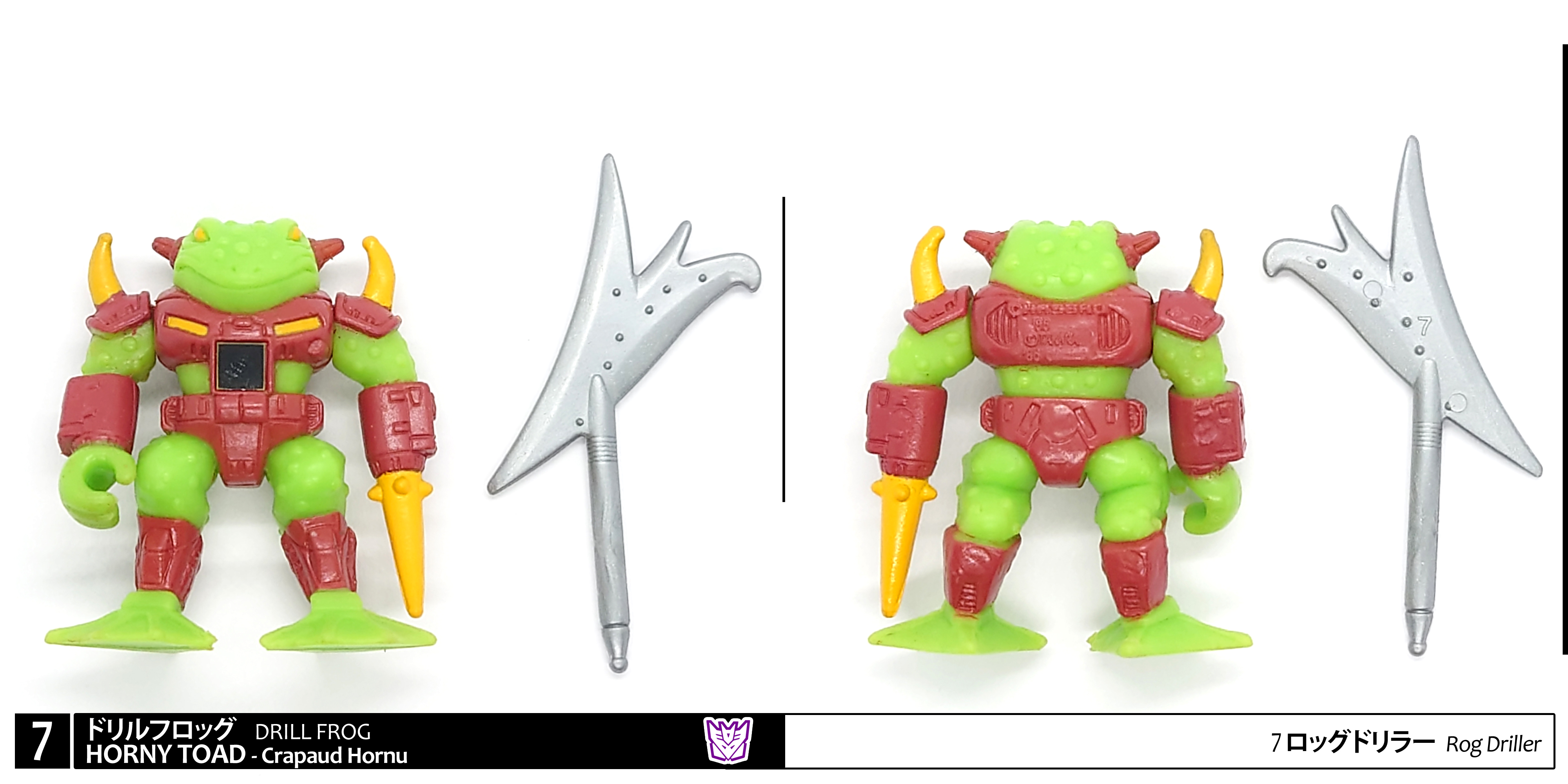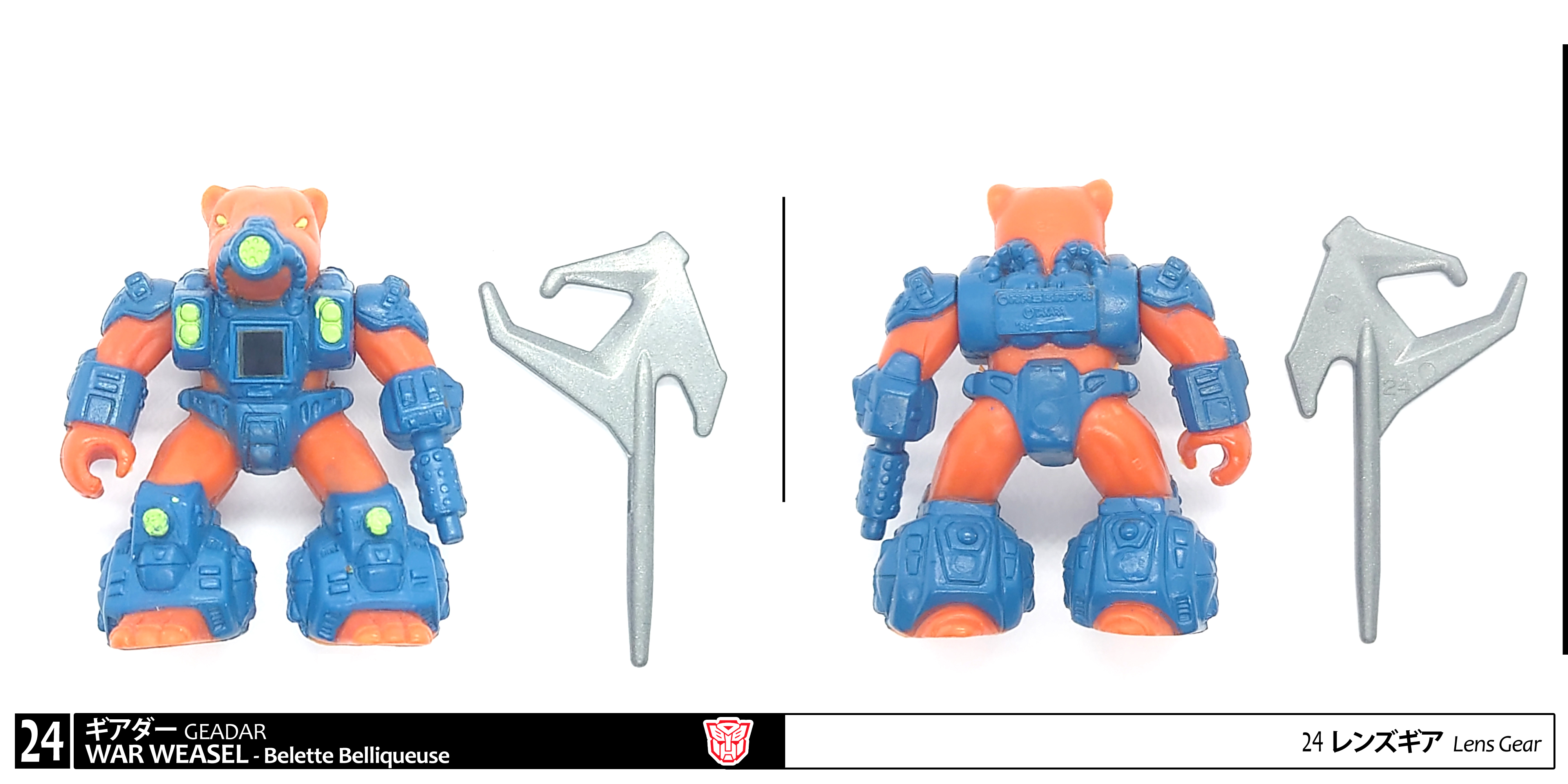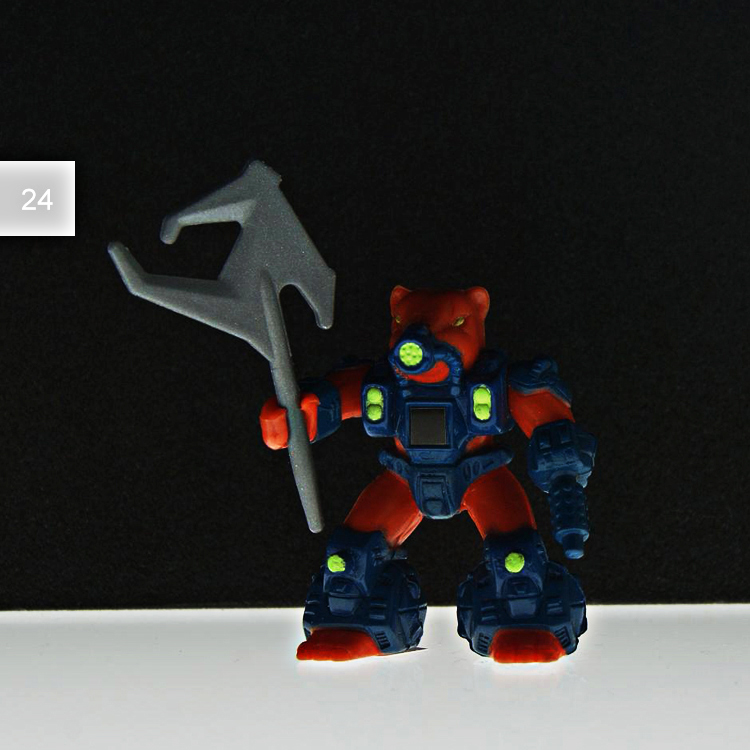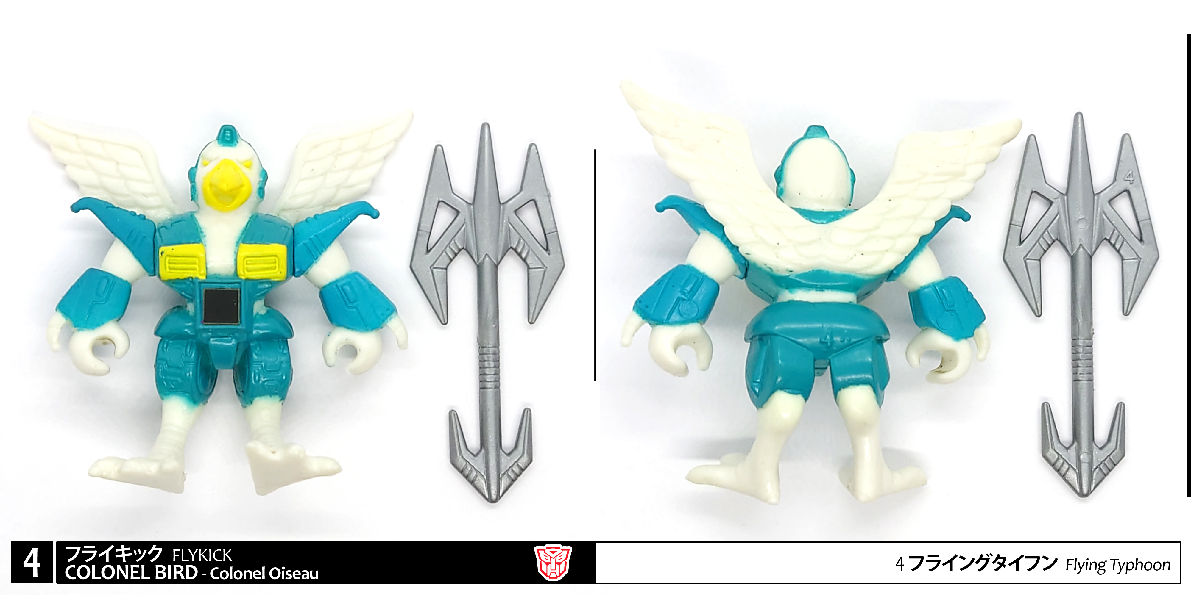 The First series of Battle Beasts was directly the most widespread one since they were available in Japan, Europe and North America during the ’80s. This series contained 28 figures (#1 – #28). On these series 1 figures the © Takara ’86 – © Hasbro ’86 mark can be found on the back of the figure as well as their number, which is also present on their weapon. In some European countries these first 28 figures were even produced in own factories resulting in the Spanish Bestias de Combate and the Greek Bootleg line Tepato Maxoi. In some cases a sticker [中国製] can be found on the bottom of one of the feet. This is referring to the fact of it being a genuine figure from Japan. It literally means; ”Made in China”, which seems a bit ironic but it makes more sense knowing all figures from the Japanese line were produced in China.