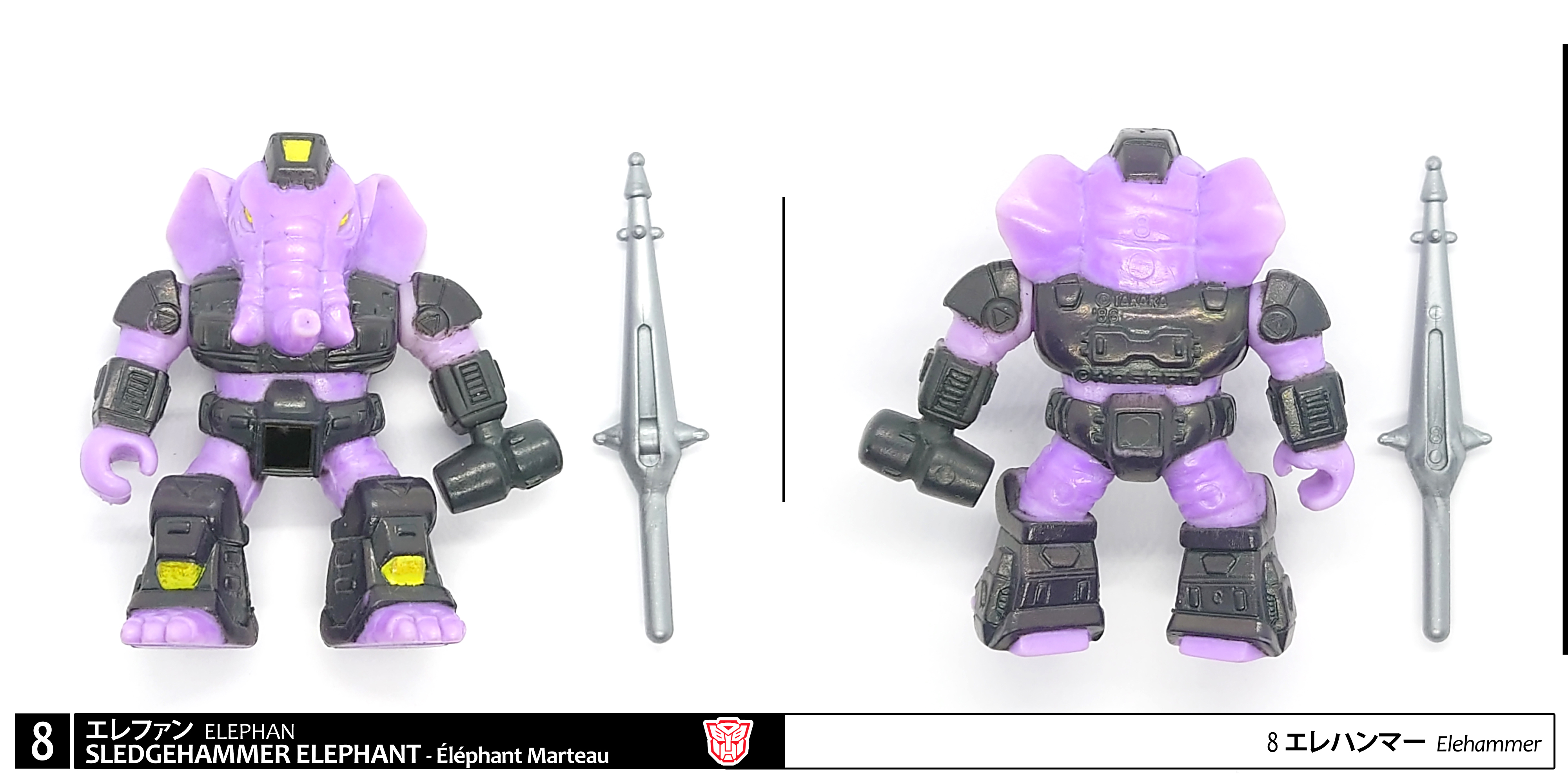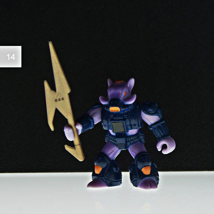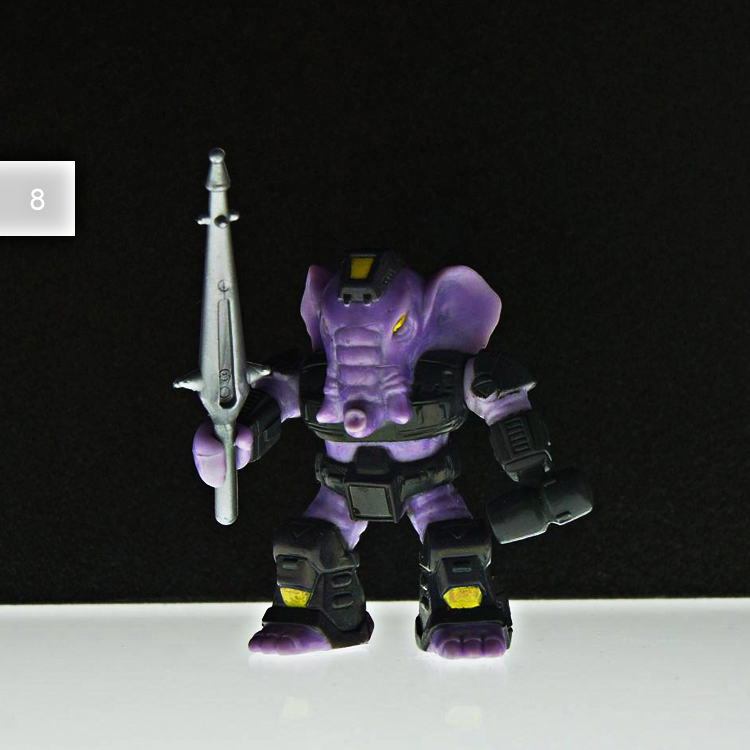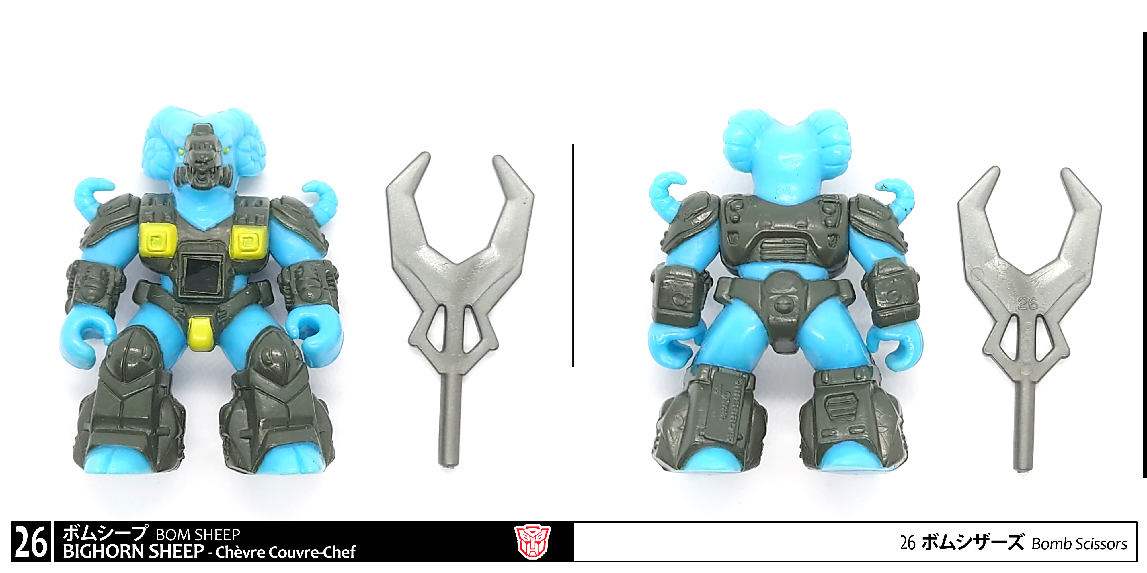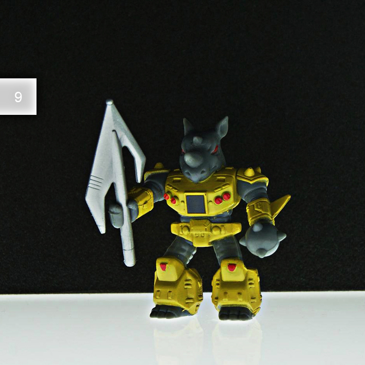 #1 ホワイトレオ Pirate Lion, #2 ビッグセロウ Deer Stalker, #3 ゴールダー Ferocious Tiger, #4 フライキック Colonel Bird, #5 キラーフィッシュ Killer Carp, #6 スネークボム Triple Threat Snake, #7 ドリルフロッグ Horny Toad, #8 エレファン Sledgehammer Elephant, #9 グレイシャープ Rocky Rhino, #10 グレイオックス Roamin’ Buffalo, #11 バトルベア Grizzly Bear, #12 デビルバット Blitzkrieg Bat, #13 ボンガ Gargantuan Gorilla, #14 ワイルドサンダー Swiny Boar, #15 アリゲトロン Gruesome Gator, #16 ビーフォックス Sly Fox, #17 ブラックタートル Hardtop Tortoise, #18 イエロージラフ Rubberneck Giraffe, #19 ヘジホッグ Prickly Porcupine, #20 バッドシャーク Sawtooth Shark, #21 ボードッグ Danger Dog, #22 ラピットキッド Hare Razing Rabbit, #23 ブルーホース Sir Sire Horse, #24 ギアダー War Weasel, #25 バイオレットホーン Bloodthirsty Bison, #26 ボムシープ Bighorn Sheep, #27 デスパイダー Webslinger Spider, #28 クラブヒット Crusty Crab