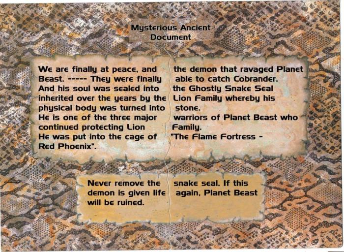 By the way, do you know about the “Mystical Serpent Seal” that trapped Cobranders soul? There is a chance that the “Mystical Serpent Seal” will be included as a surprise present with any currently available BeastFormer purchase.