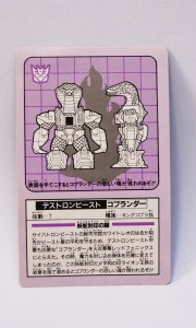 On the back it looks like a regular Beastformers ID Card with obviously the Stone Cobra being a Decepticon Beast as well but until this card is fully translated it´d be speculation so this is where it stops for now.