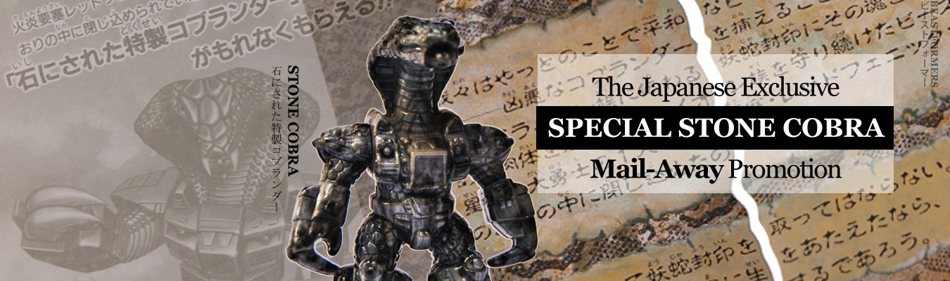 The Stone Cobra figure or Special Stone Cobrander (石にされた特製コブランダー), the name it was promoted with during the Mail-Away Promotion is considered one of the most rare Battle Beasts. And this is for a reason because it was only available in Japan as a Mail-Away item and for a limited period of time since the promotion ran until January 31, 1988.