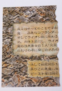 Sadly enough there is, as far as known within the Beastformers Team, no translation done on this card yet which still leaves a few questions unanswered. Because was this card actually representing the seal or was there a seal attached to it in a way similar to the lucky hit card that held a Sunburst rub on it!?!? For now these questions remain but hopefully this will be explained soon.