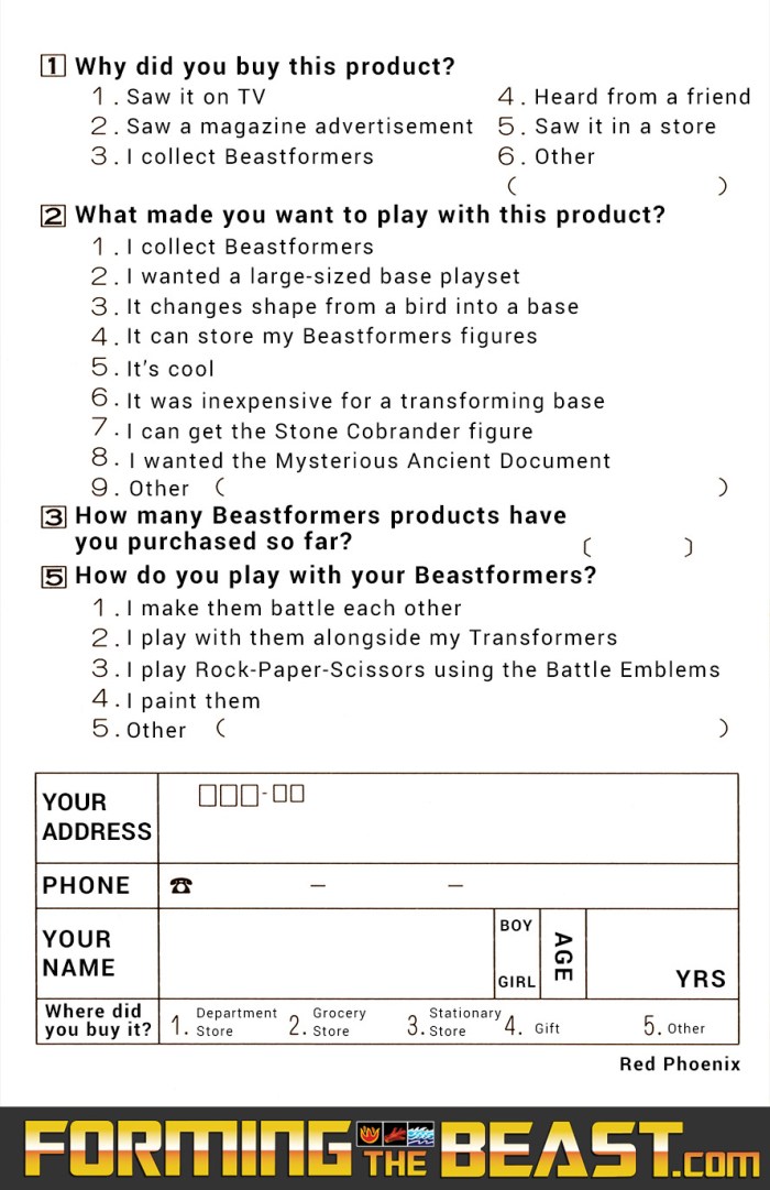 Forming the Beasts – Stone Cobra – Mail-Away Promotion – Red Phoenix Questionnaire