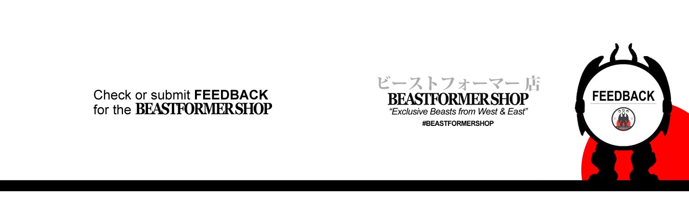 Post a picture of your purchase from the Beastformer Shop via Instagram or another social media platform with #BeastformerShopFeedback and a little rating or comment about your experience. Fellow collectors can use this hashtag to check the Feedback that the Beastformer Shop has received.