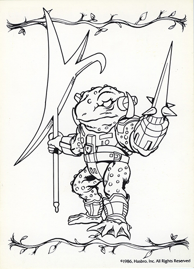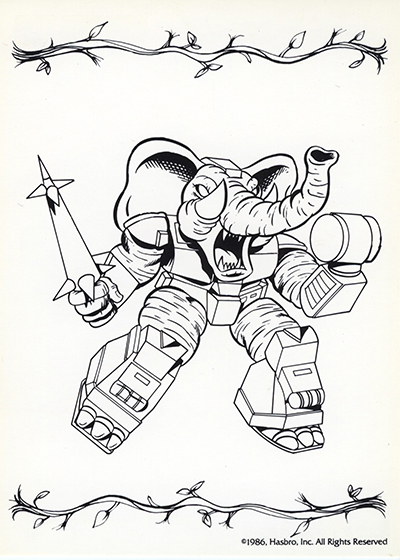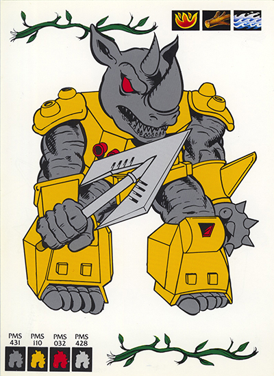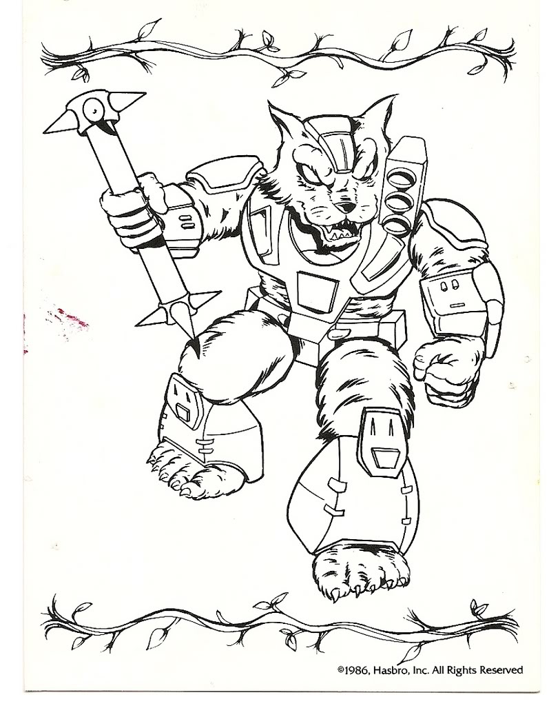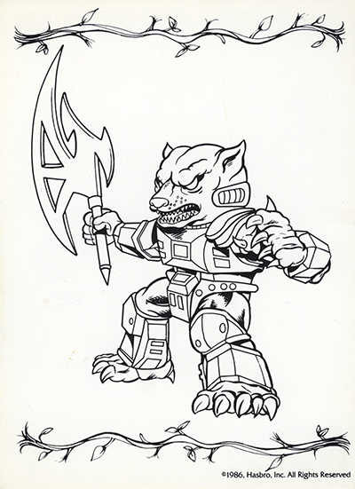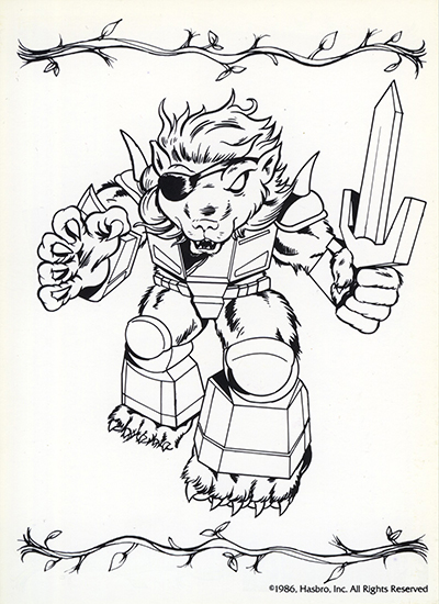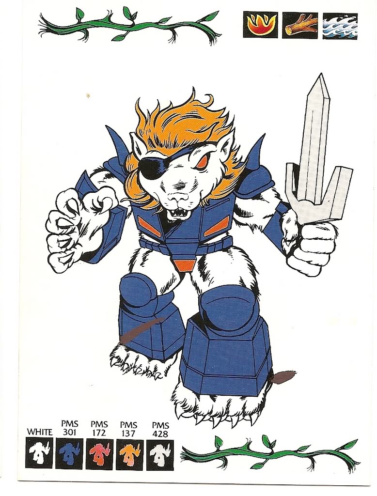 The artist who was granted with this task worked for Hasbro Toys as package designer, Toy designer and Illustrator from 1983-1989. THE period during which of course the Battle Beasts were released but also other famous lines like Transformers, G.I. Joe and other lines by Hasbro. Outside this crucial Line Art file for the Battle Beasts this artist was also involved and/or responsible for the Line Art catalogs of ´Air Raiders´, ´GI Joe´ and ´Wuzzles´. And all the artwork in those Line Art catalogs were used by numerous licensees. This artists was also closely involved in the design of the Army Ants line by Hasbro Industries for which he provided all the model sheet drawings for all 40 individual figures. And also created some of the packaging artwork for the ´Inhumanoids´ and ´COPS ´n CROOKS´ line. Apart from his work for Hasbro during the 80´s he has also been responsible for a variety of design work for companies such as Hallmark Cards and Concord Confections. So this artist has a very impressive portfolio and the Battle Beasts Line Art kit is part of it.
