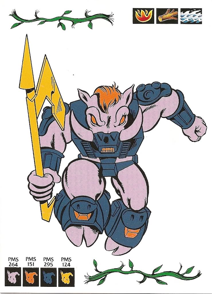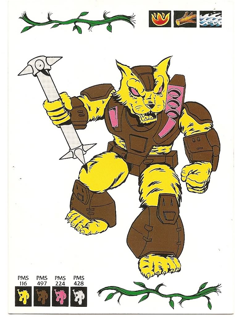 The moment Hasbro became responsible for the release of the Battle Beasts line outside Japan (North-America, Europe) Takara was still working on the release of the Beastformers Series 1 in Japan. But in order to have some control over the line and the way how figures should have been released in one consistent way all over the release countries some crucial info was shared between those companies. This info was mainly about the first 18 Battle Beasts figures in the beginning (during 1986) since those prototypes were just finished by the designers of Takara in Japan. Photo´s of those prototype sculpts, the first actual BB figures aside from sketches, together with probably strict color specifications for each figure were send over to Hasbro to provide them with the much needed info to get things going for the release of the Battle Beasts in the West.