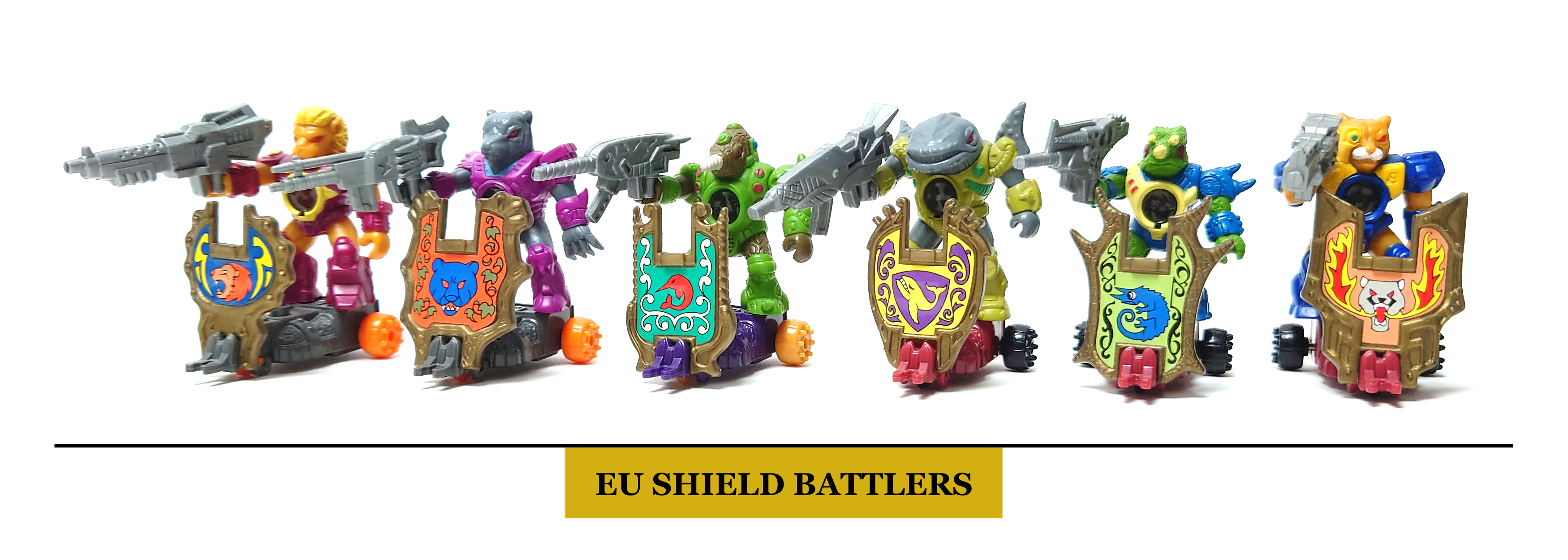 The exclusive character of the EU Shield Battlers is related to the fact they were exclusively sold as individually packed complete Battle Chargers by HASBRO in a very limited amount of EU Countries, and possibly a limited area of either the US, for a relatively short period of time. The EU Shield Battlers are;
