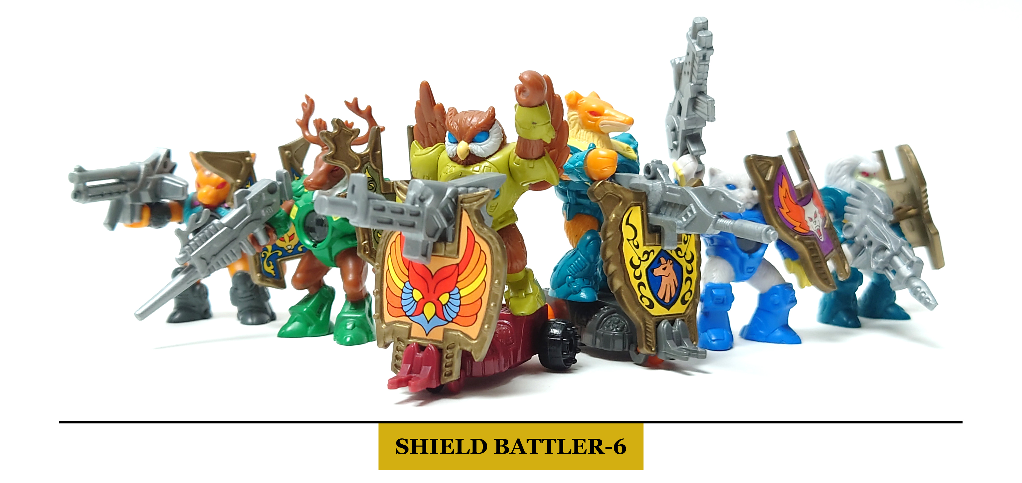 The Shield Battler-6 (シールドバトラー6) box set (1988) was exclusively sold by TAKARA in Japan and it contained 6 Shield Battlers (Full-Armed Laser Beasts) knowing;