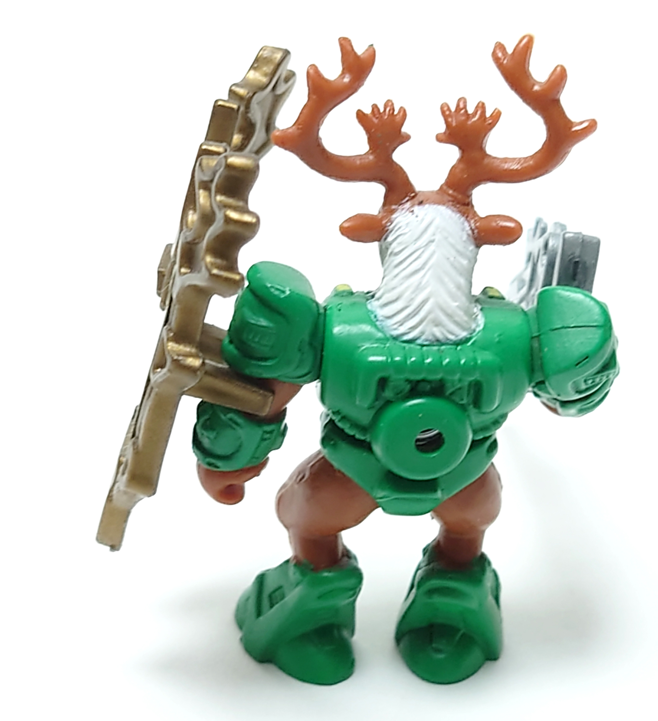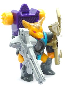 Each Sled has two PEGS (a cylindrical piece) that perfectly fits in the PEG Holes found on the Laser Beast. Holes, because alongside the known peg hole found at underside of the left foot which is used to attach the figure to the standing platform of the Sled without it falling off the hole found on the backside of the Laser Beast, the crucial hole that´s required to let light in for the Orb symbol to show, has another function as well since it´s also a PEG Hole. This is the one you´ll have to use when you want to turn the Sled into a Backpack. (Be careful because in some cases there is quite some friction and force needed to attach the Sled to the back and it could result in paint damage!!) Obviously the function of the Orb is absent in case the Backpack mode is used.