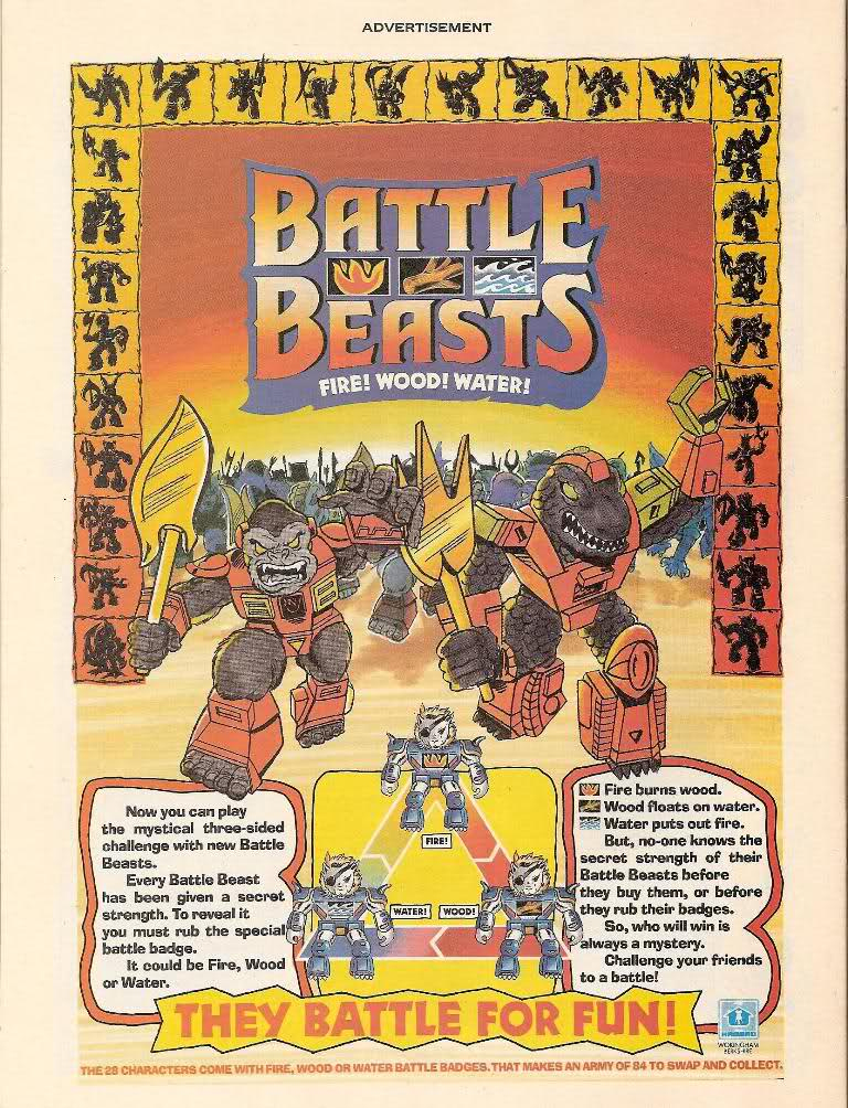 Without a doubt a strong commercial because let´s be honest who didn´t want Battle Beasts after seeing this. And it´s also clear you´d not settle with just a 2 pack as they simply had to ¨Grow into and Army¨. But it often is the last line that caused some questions because; Collect all 84?